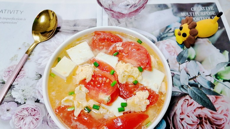 15. 拍上成品图,一道美味又营养的西红柿豆腐汤就完成了。