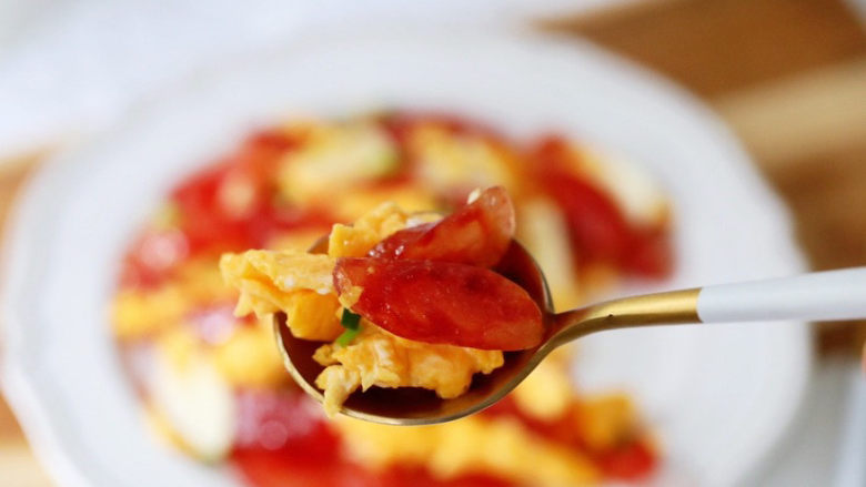 鸡蛋可以说是百搭食材了,今天用了腊肠和鸡蛋搭配,咸甜的香肠配上黄灿灿的土鸡蛋,再加上一根小葱提香,几分钟功夫,就炒出一盘色香味俱全的好菜来,做起来超级简单,吃的人却直叫好吃!