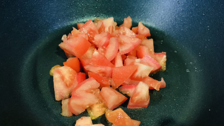 2. 将西红柿切小块,没有去皮,皮的营养也很好哒