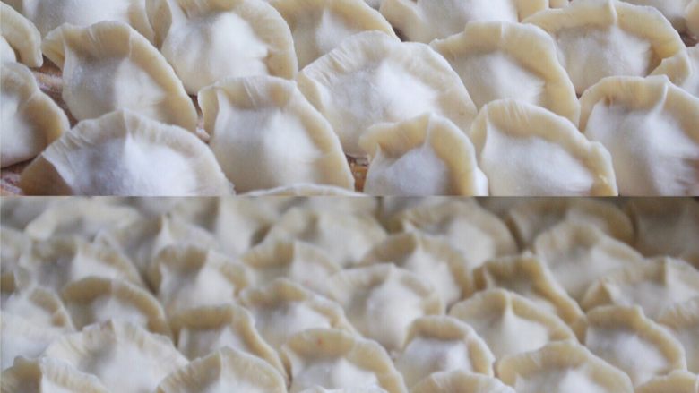 8. 包好放入盖帘,盖帘不粘,晚上包好第二天早晨煮都没有问题。