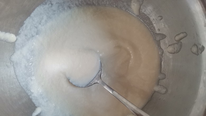 13. 锅烧热,开小火不停地搅拌翻炒至起泡泡,变有点稠,关火