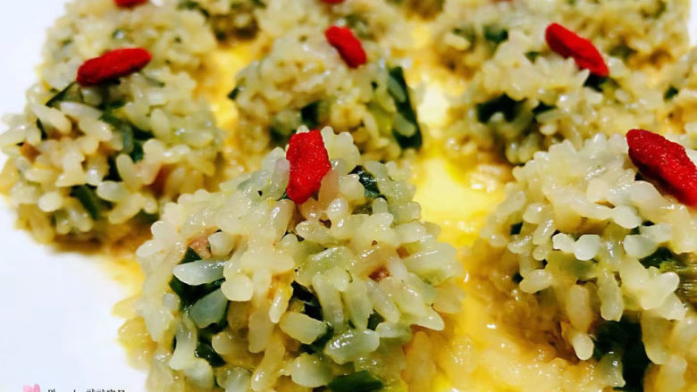 9. 浸泡好的枸杞摆放在三鲜糯米球上面就大功告成了
