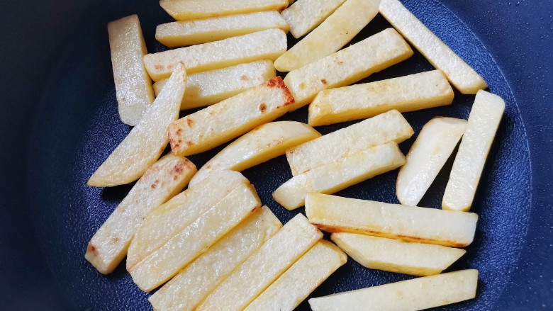5. 土豆煎至金黄。