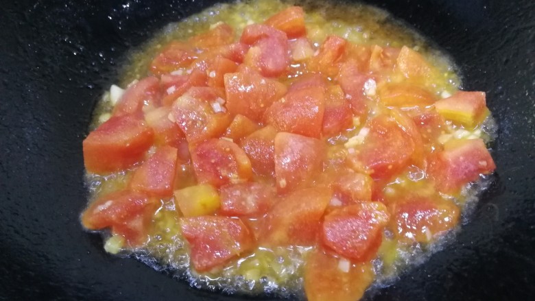 10. 番茄丁炒软加入番茄沙司,文火炒匀。