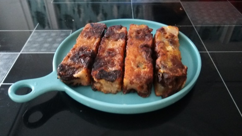 8. 煎制四面金黄在倒入红糖水煎制收汁。