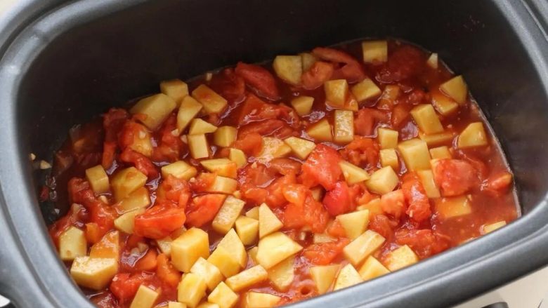 2. 将番茄和土豆去皮后分别切成小块备用。