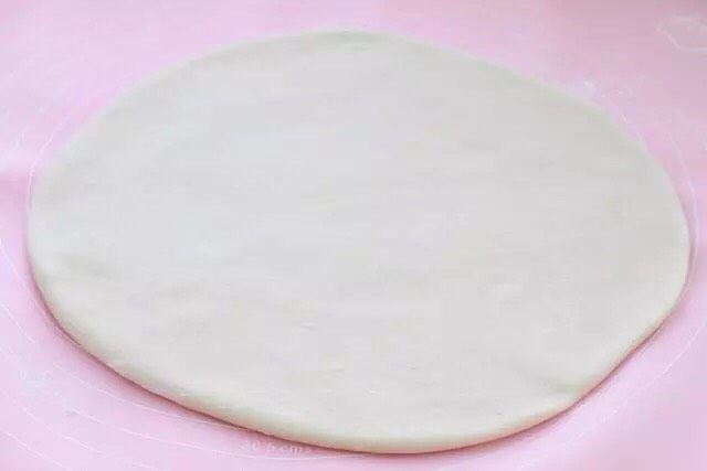 5. 取出揉好的面团用擀面杖擀成厚度约为0.5厘米的大面饼。