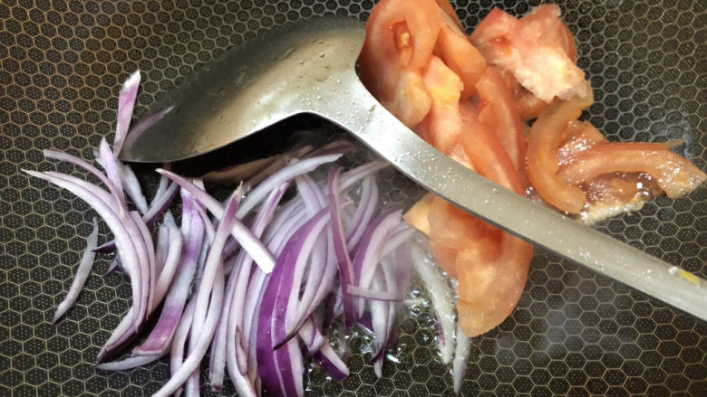 番茄肥牛,加上金针菇,带汤带菜,荤素搭配,一个菜配上一碗米饭足矣