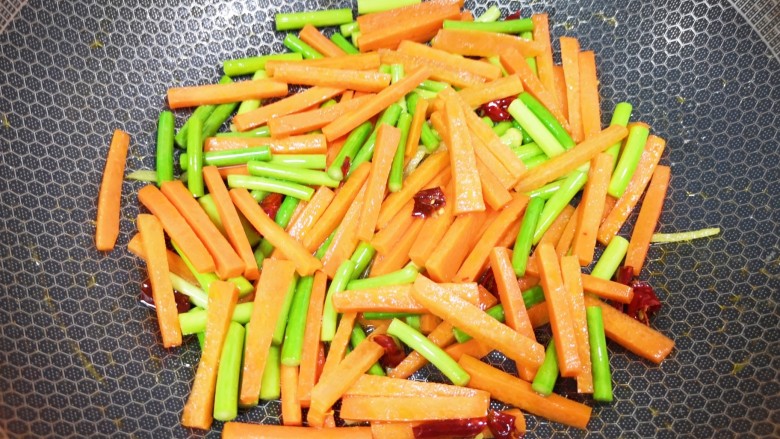 胡萝卜中丰富的维生素A对视力有很好的帮助,所以正在上学的孩子应该多吃。用胡萝卜搭配蒜苔腊肠做了一道家常炒菜,宝贝很喜欢吃哦!