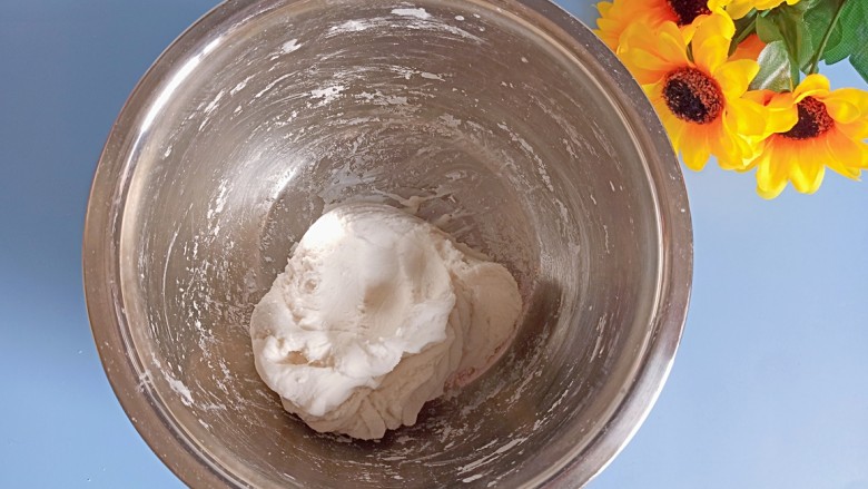 11. 5粉一白组合一下成一朵小红花,压扁之后在花瓣上用牙签压出痕。一朵小红花就完成了