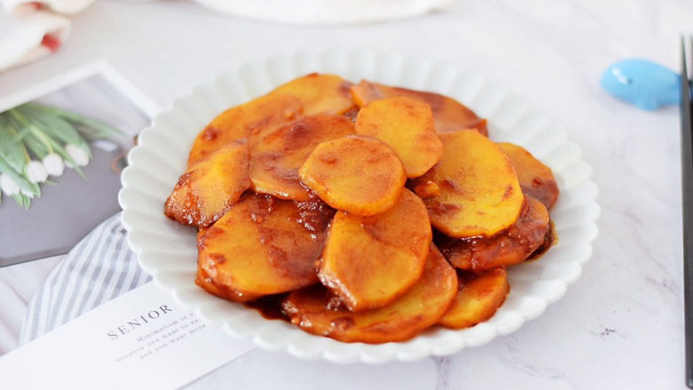 2. 土豆去皮洗净切厚片,不用切很薄,所以没有漂亮的刀功也能做到啦