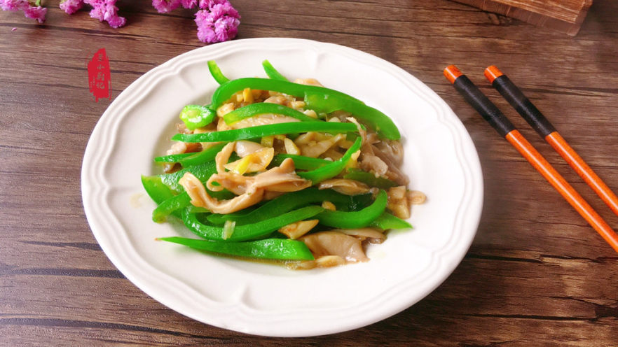 青椒炒蘑菇,口感清淡,低脂健康,非常适合春天哦~