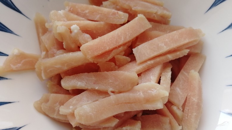 10. 1小勺淀粉加水调成水淀粉,倒入肉条里抓匀蒸出的肉更嫩滑。
