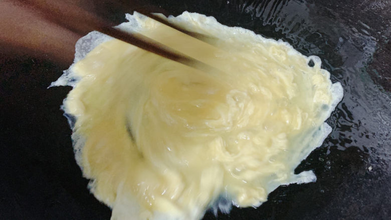 4. 锅中加入少许油,滑炒成鸡蛋块