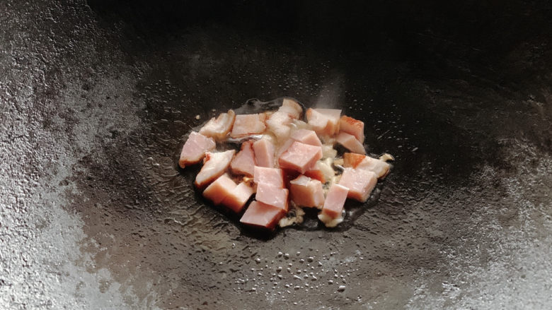 5. 锅烧热油,加入蒜事先爆炒出香味