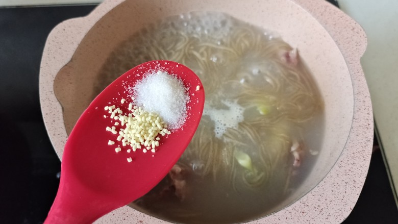 12. 煮开后,加入粉丝,煮至粉丝变透明
