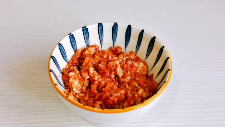 10. 再加入肉糜,小火翻炒。