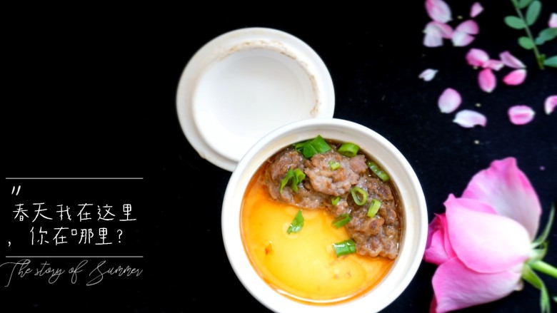 12. 待鸡蛋凝固后放上肉沫,继续蒸