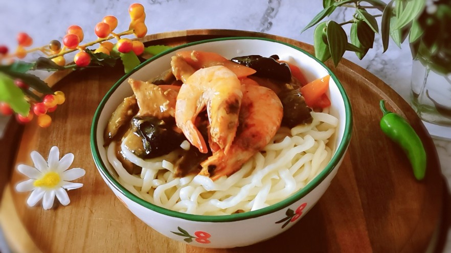 - 1-海虾也可以剥出虾仁直接放入拌面卤里一起烧制。