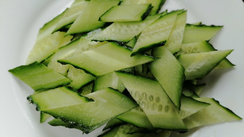 5. 再把黄瓜切成菱形片状
