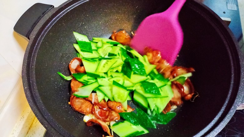 黄瓜具有清热解毒、健脑安神、降血糖,减肥美体的功效。腊肠具有开胃助食、提供能量、补充营养等功效,腊肠和黄瓜荤素搭配,营养丰富。重要的是美味。