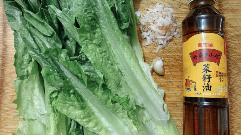 2. 将蒜瓣拍散,虾皮适量洗净待用。
