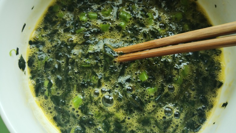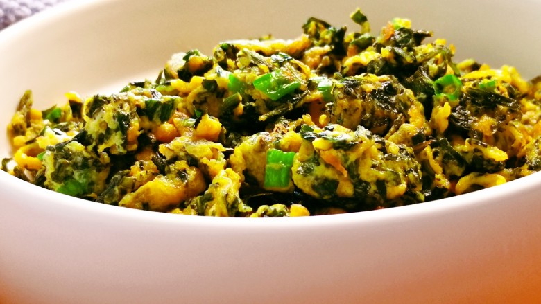 15. 放入荠菜鸡蛋液炒熟出锅装盘