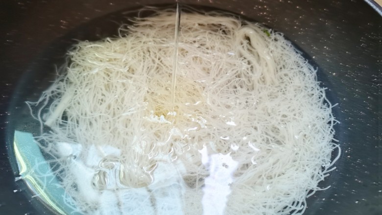 6. 锅中水烧开,加少许的油,粉丝下锅焯煮一下