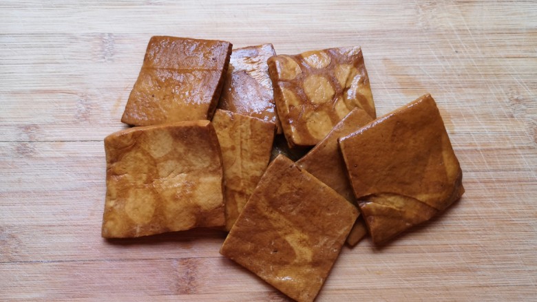 6. 炒锅内倒适量的食用油烧热,下入香干。