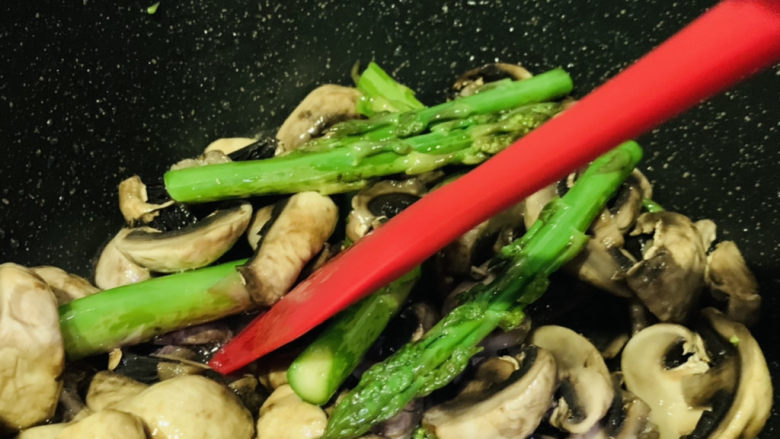 脆嫩爽口的芦笋炒蘑菇,低脂无负担!