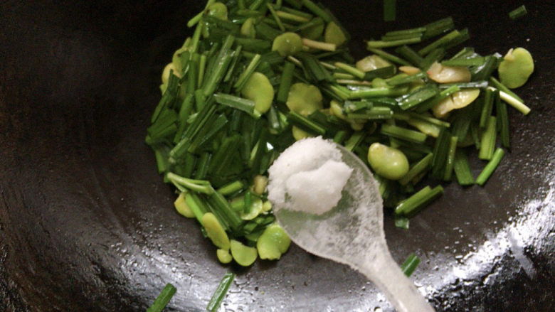 1. 主要食材如图所示示意,韭菜、蚕豆。