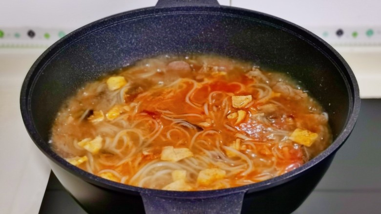 3. 水烧开后下粉,中火煮,可以多次淋入冷水。