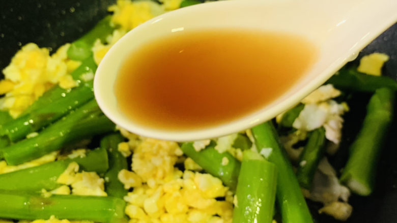 4. 再加少许盐和食用油,会让芦笋更鲜绿