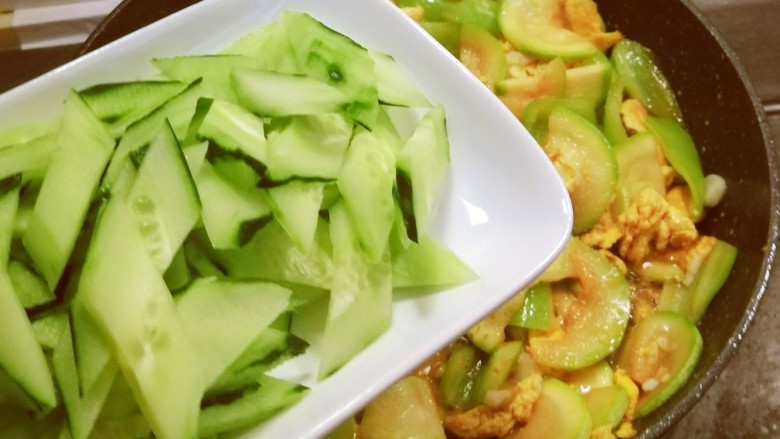 7. 锅中留下底油继续加热,油热后放入西葫片翻炒断生。