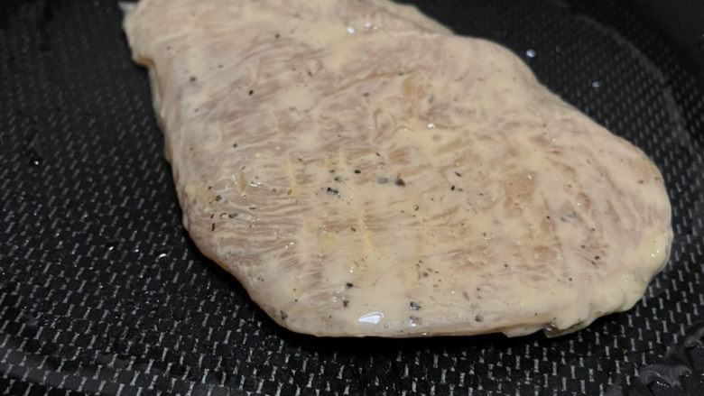 2. 腌制好的牛排放入锅里小火煎制