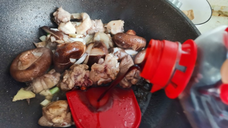 14. 加入适量的水大火煮开转小火炖至鸡肉软烂