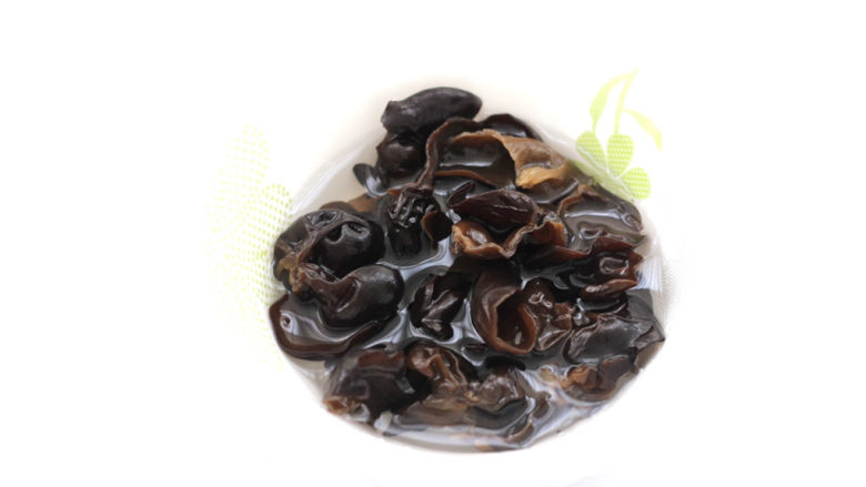 4. 锅中倒入适量清水烧开,放入泡发好的木耳焯水1分钟,捞出沥干备用。