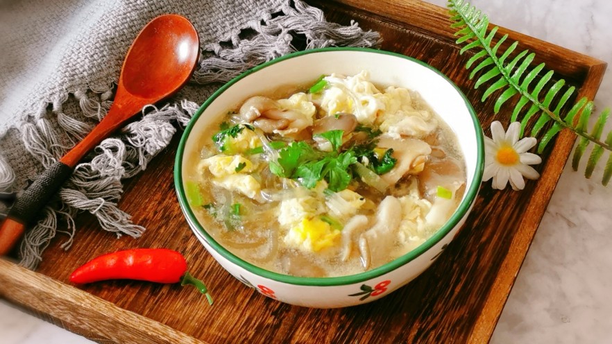 一直就喜欢各种菌菇汤,平菇鸡蛋汤,鲜美可口。