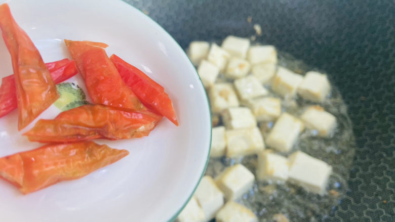 5. 起油锅放入豆腐