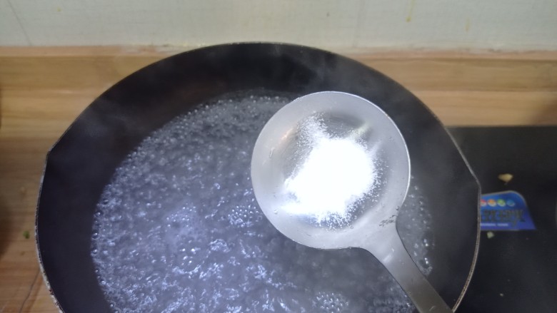 6. 放入韭黄,焯一下水,半分钟即可捞出