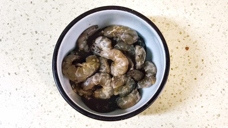 15. 投入已经腌制入味的虾仁,煸炒一下