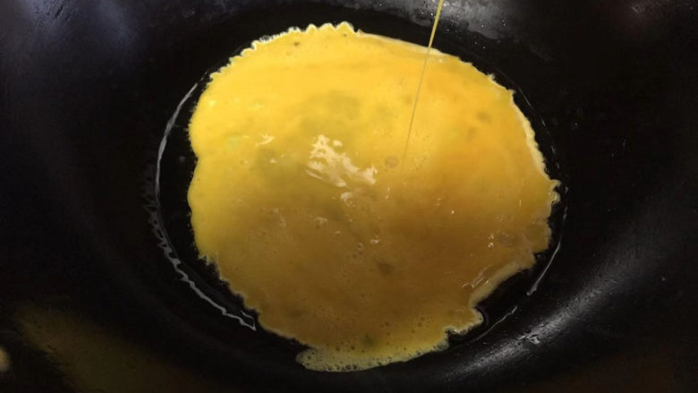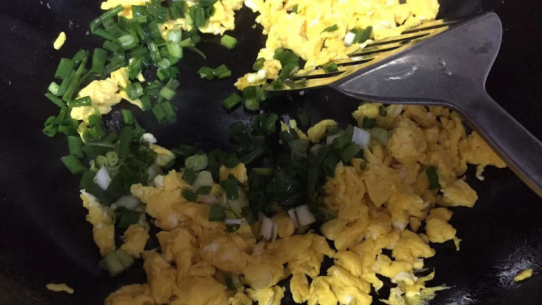 13. 剩米饭会有点硬,用小火慢慢炒,把米粒炒成颗粒分明