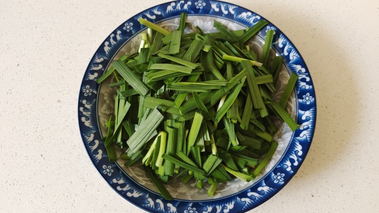 2. 韭菜摘去黄叶,清洗干净