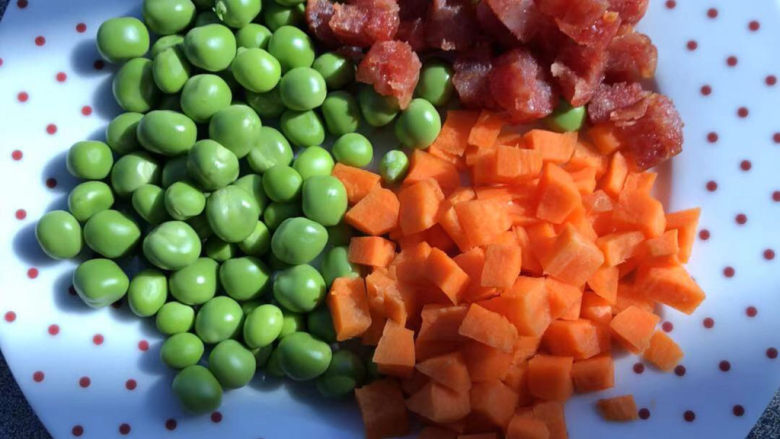 11. 放入豌豆和胡萝卜丁。