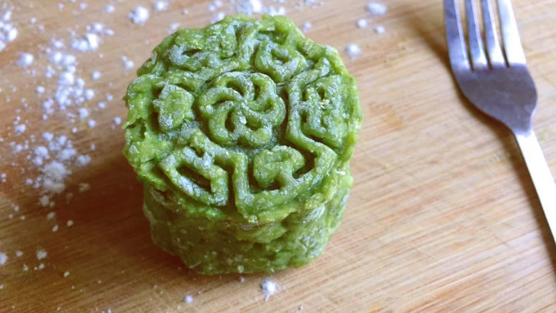 14. 蚕豆糕就做好啦,撒上少许糯米粉