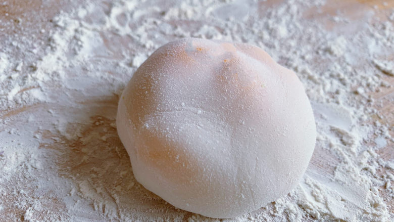 13. 粘板上撒上炒好的糯米粉,挖一团面团