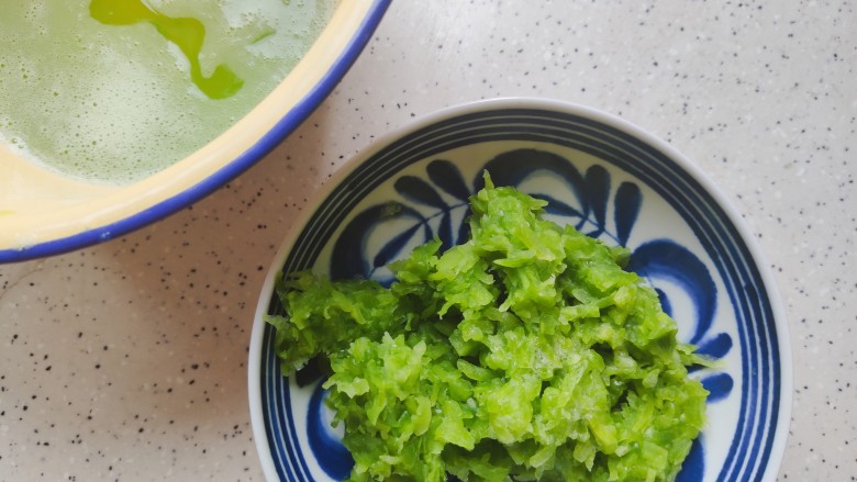 8. 15分钟后,用手挤干苦瓜的水分,然后抖散