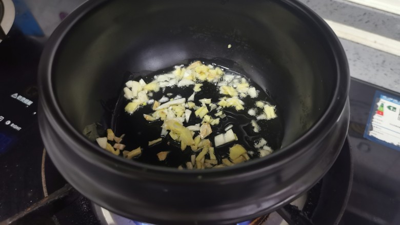 7. 放入姜蒜爆香