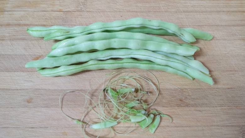 4. 肉豆角抽丝。