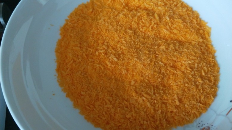 14. 然后在沾一层蛋液,在裹上面包糠
